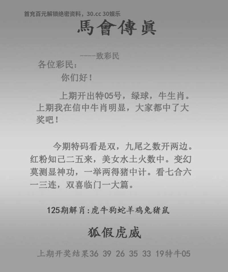125期马会传真: 今期特码看是双,九尾之数开两边。红粉知己二五来,美女水土火数中。变幻莫测显神功,一举两得猪中计。看七合六一三连,双喜临门一大篇。 狐假虎威 特围生肖:虎牛狗蛇羊鸡兔猪鼠 |